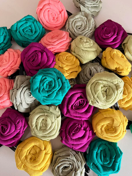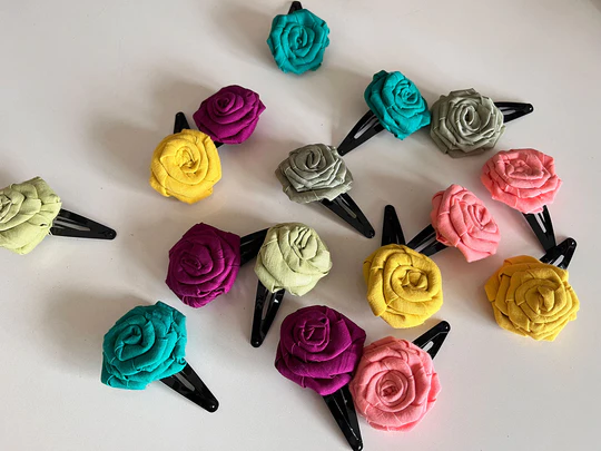 Up-cycled and handmade hair accessories made using 100% cotton and handwoven cotton silk fabric from our production excess. Made by Oh Scrap Madras in Chennai