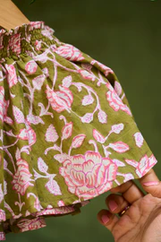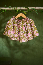 Bringing back one of our bestsellers, the round and round skirt, this time in a beautiful floral hand block printed cotton.