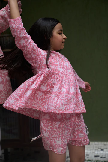 This comfortable summer ready coord set for girls is made for rolling on grassy slopes with wildflowers.