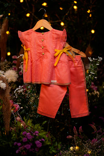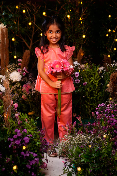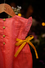 A co-ord set in the most gorgeous shade of pink contrasted with an olive green selvedge detailing. This handwoven fabric spells love!