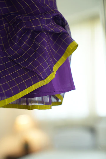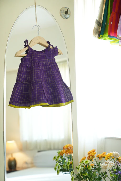 A simple voluminous tiered cotton silk dress with contrast selvedge in lime green to cover your little one in softness and pure love. For the tiny ones, comfort is key and this dress makes crawling around and enjoying festivities fun. The adjustable tie ups and roomy fit ensure the dress can be used even after they are 15 months+