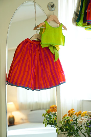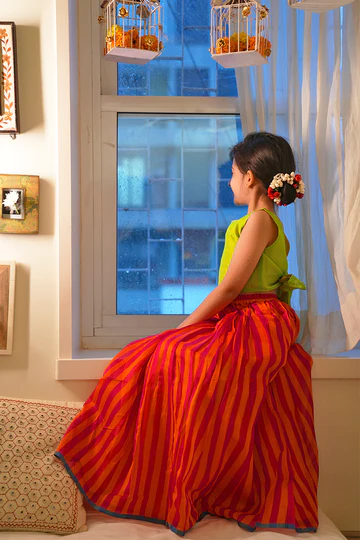 Comfortable, versatile, elegant and absolutely festive! Our bestseller and classic LTWT style – the tie back blouse paired with a lehenga skirt with pockets! The skirt is completely elasticated at the waist so you can use these gorgeous outfits for long!