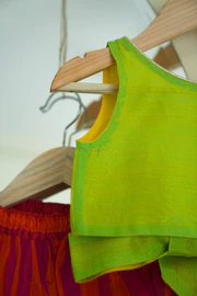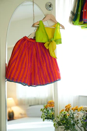 This blouse can also be worn like a jacket and then wrapped around and tied! We urge you to use the pieces as separates and give them a longer life instead of waiting for an occasion to come and go! Pair the skirt with a white tee and let these outfits live, breathe and make memories with your little ones.