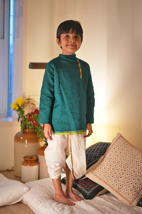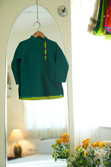 Be the first to review “Panna boys ethnic wear kurta in green handwoven cotton silk”