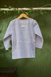 Be the first to review “‘Sleepover party’ kids unisex kurta in grey hand block print cotton malmal”