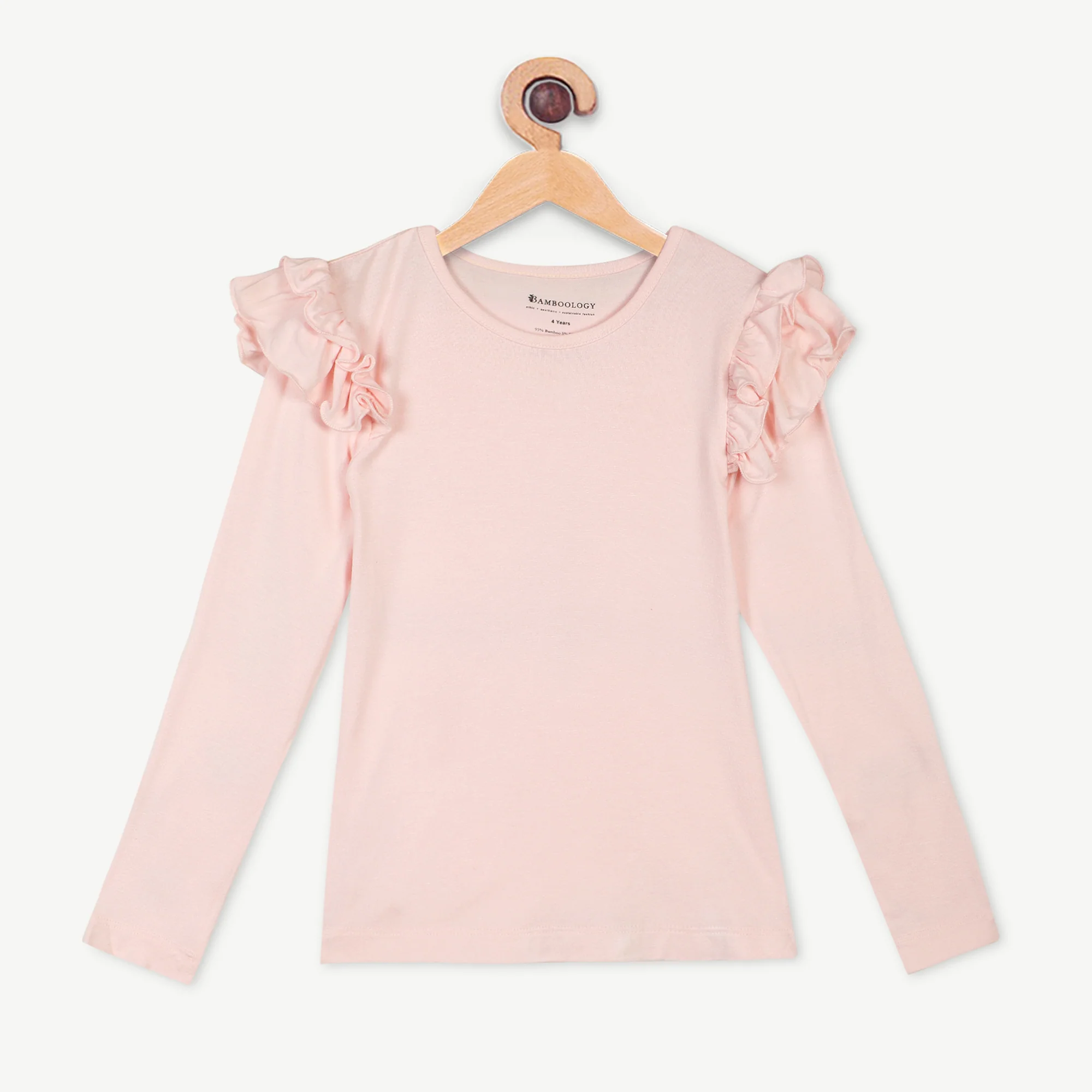 Bamboo Fabric Girl’s Ruffled Shoulder Top | Anti-bacterial, Anti-viral Collection