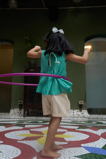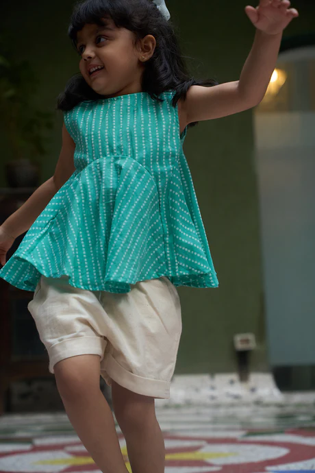 Please note, the top is paired with ‘Raindrops keep falling’ shorts in kora handwoven cotton