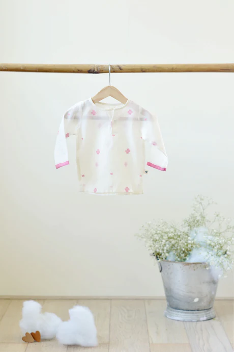 A simple kurta in the yummiest jamdani fabric to cover your little one in softness and pure love. Whether it’s the month of May or June, we hope your little one is always over the moon.