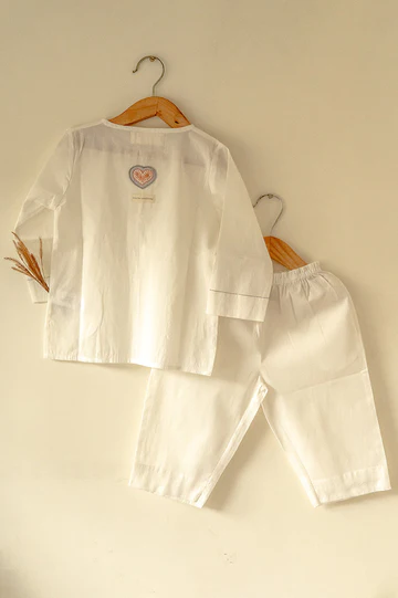 ‘I want to be like grandpa’ white kurta pyjama set in organic cotton