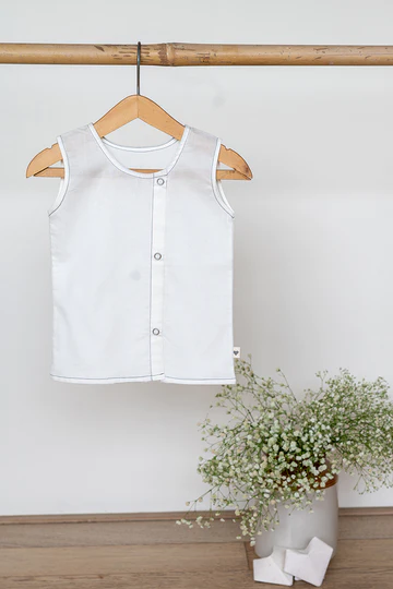 A simple old school jhabla with contrast thread detailing to cover your little one in absolute softness and pure love. The closest textile to as precious and pure as your little one.