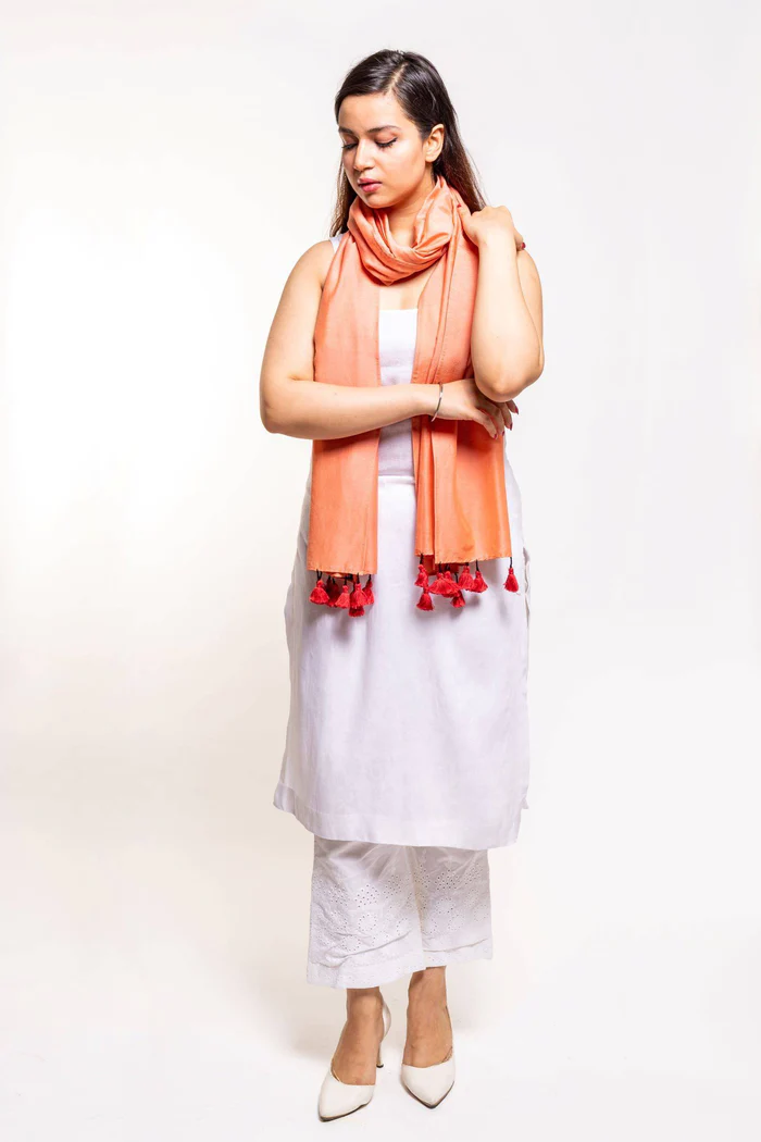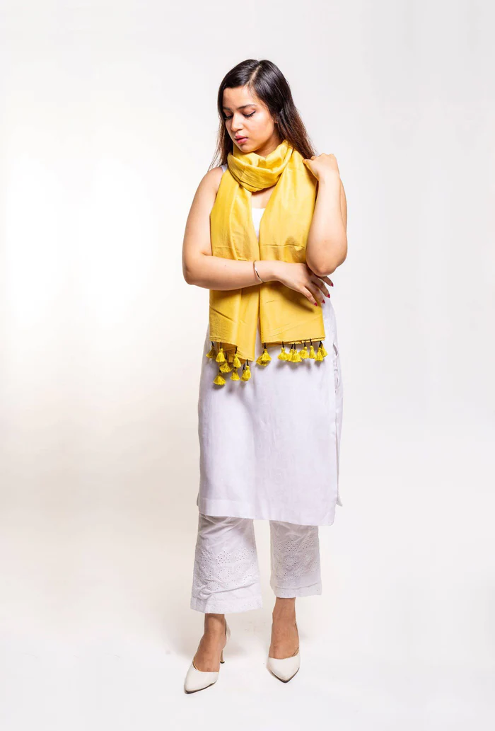 The scarf is dyed using 100% natural materials. The cotton silk fabric, made with the combination of positive characteristics of cotton and silk gives it a smooth sheen and a nice flow. This product requires gentle hand wash and light iron.