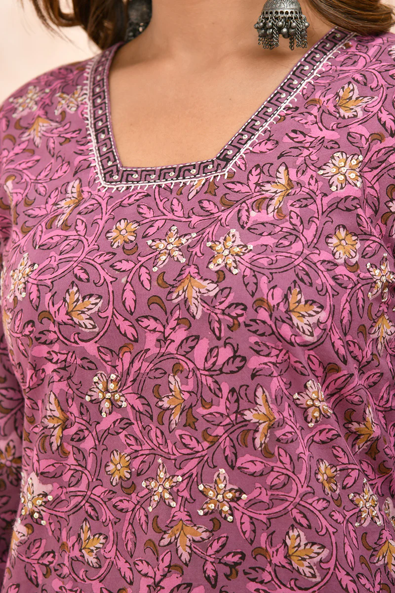 Flamingo Pink Dabu Printed Organic Cotton Straight Kurta