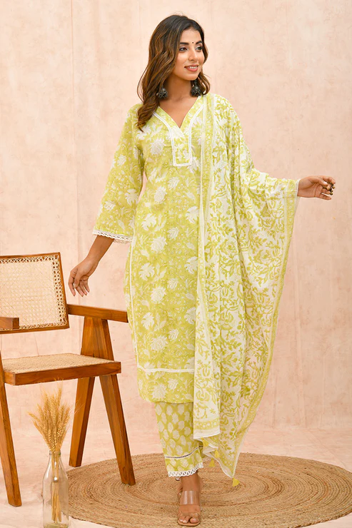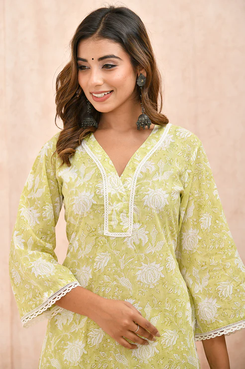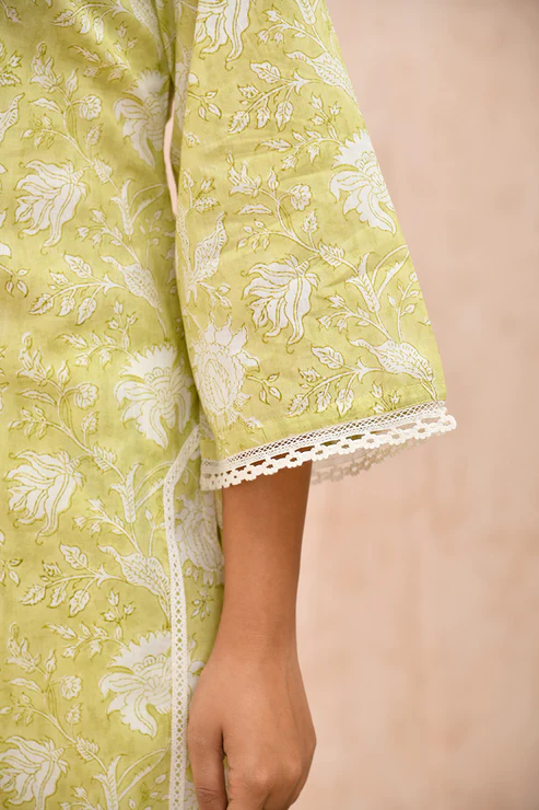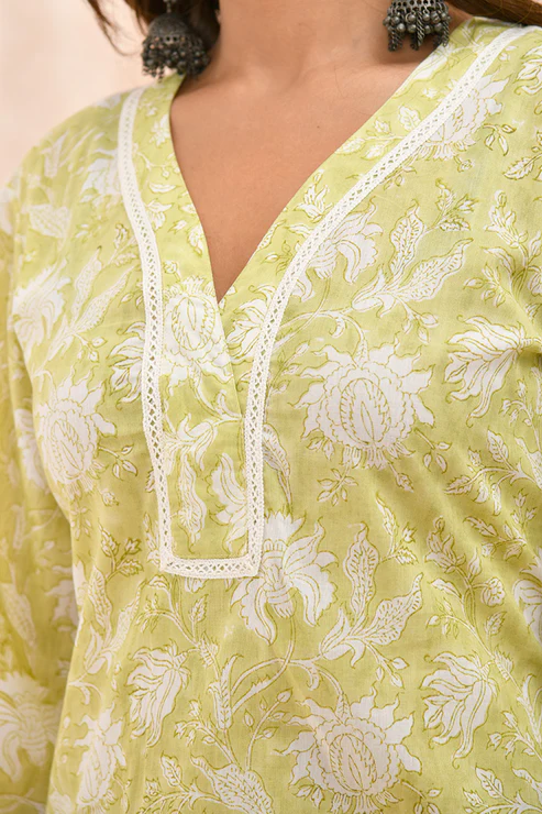 Lime Green Organic Cotton Straight Kurta
