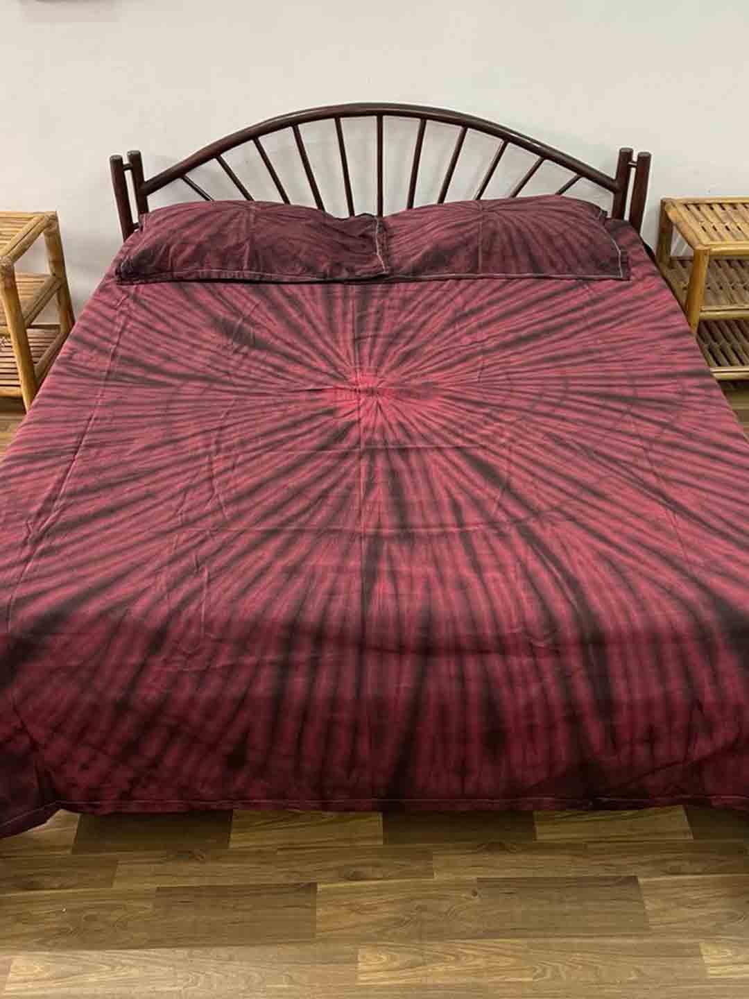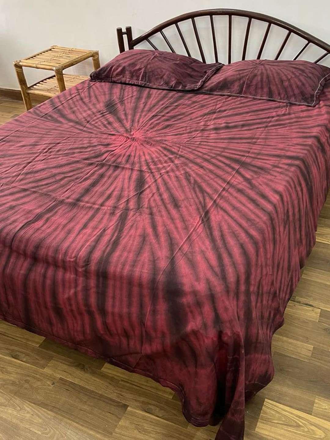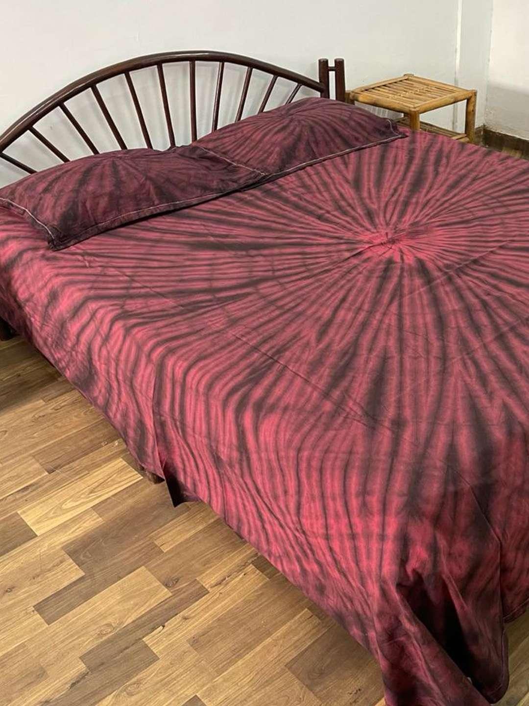 Handwoven Cotton Double Bed Sheet Striped Tie & Dye with Pillow Covers – Maroon