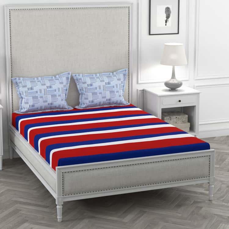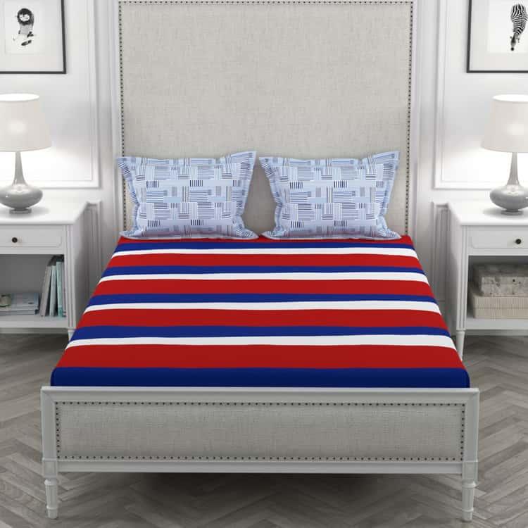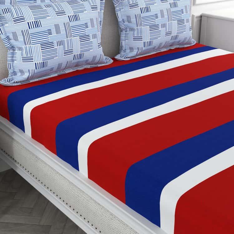Designed with bold stripes, this bedsheet set includes a king bedsheet and two pillow covers. Made from a soft fabric, this set not only ensures superior comfort but also makes your living space a favourite.