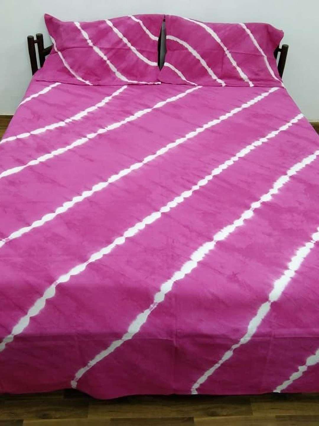 Tie and dye Handwoven cotton double bedsheet with pillow cover -Pink