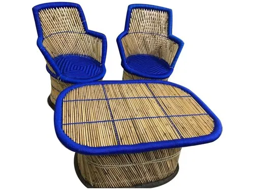 Handmade Bamboo Mudha Chairs Table Set, For Sitting