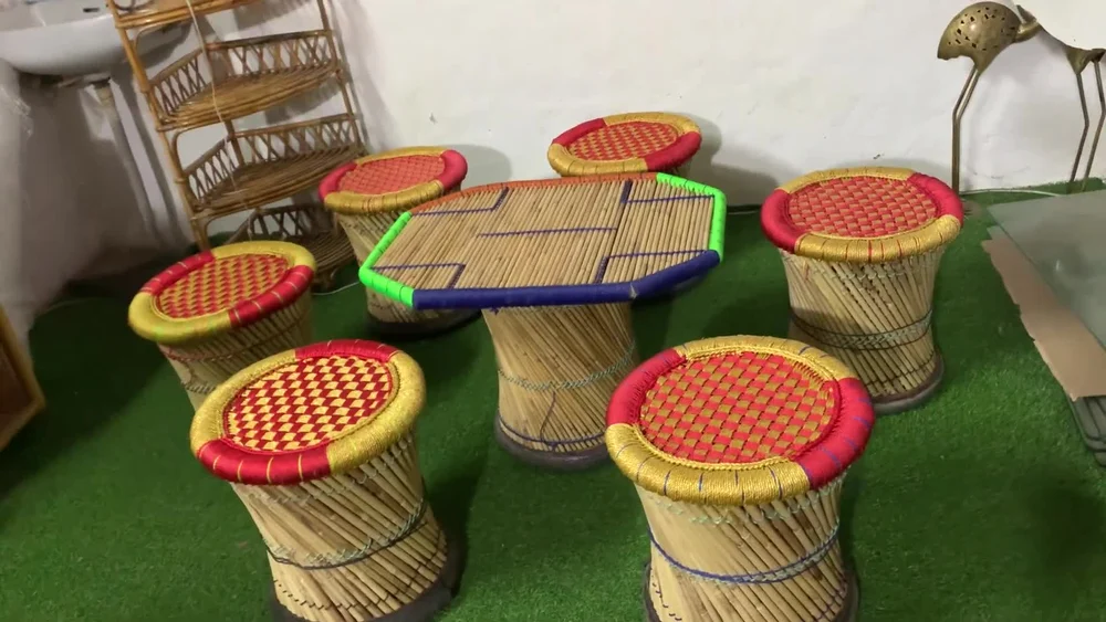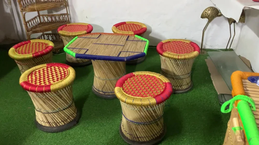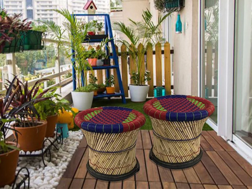 • Handcrafted Bamboo  Mudha for indoor/outdoor.