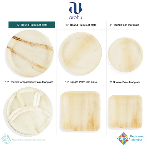 Areca Palm Leaf products are made using naturally fallen leaves from Palm trees in the South Indian States. Areca Products include Areca Palm Leaf Plates, Areca Palm Leaf Spoons, Areca Palm Leaf Bowls etc. Each size comes in 3 different qualities for local and export markets specifically. The Palm leaf based organic & eco-friendly cutlery comes in various sizes from 3 inches to 12 inches and includes 32 various design moulds including circular, square, rectangular, heart-shaped, with/without ribs, with/without partitions and more. We also custom manufacture to specific requirements. Additionally, we offer third-party white labelling(contract manufacturing) and drop shipping services across our products.
